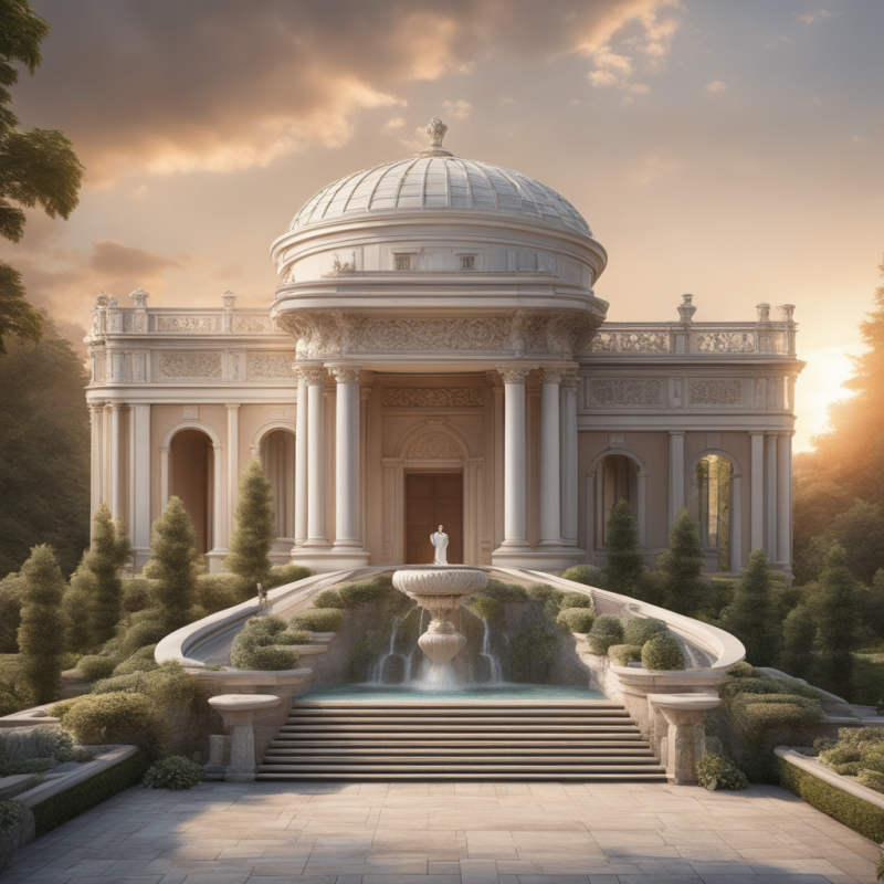 In het hart van dit natuurlijke toevluchtsoord, te midden van weelderige tuinen met exotische bloemen en bomen die zacht ruisen in de bries, rijst de Mystieke Bibliotheek majestueus op. Het gebouw lijkt versmolten met de natuur, met wijnranken die de muren omarmen en zachte briesjes die de pagina's van oude boeken liefkozen.
